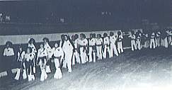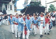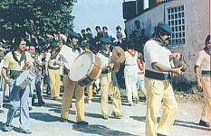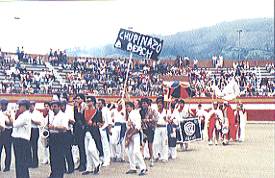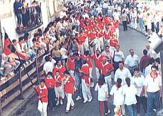 inscripción y legalización. En principio, fueron 20 los socios, todos ellos jóvenes de Ampuero de entre 14 y 18 años más algún otro de la comarca vinculado a Ampuero por lazos familiares ó de amistad. En los años siguientes fueron aumentando el número de socios hasta alcanzar casi los 50, algunos de ellos de otros pueblos próximos a Santander capital. En la actualidad son 26 socios, que prácticamente constituyen el núcleo originario y primitivo de la época fundacional. Su sede social, como otras, se ubica en los bajos de la Plaza de Toros La Nogalera, cedido por el Ayuntamiento en régimen de arrendamiento simbólico en 1.980. El mismo fue construído y acondicionado por los propios socios con alguna ayuda y con gran esfuerzo económico (ténganse en cuenta que en aquellos años muy pocos trabajaban y la mayoría se encontraban estudiando). Por expreso deseo de los socios, y así consta en sus estatutos, fue instituído patrón de la peña San Mateo. Como consecuencia del nombre adoptado para la peña en su fundación, ésta trasladó al Ayuntamiento la idea de inaugurar en Ampuero las fiestas patronales con el lanzamiento del "cohete" (chupinazo) al modo que se hace en Pamplona frente a la balconada principal del Ayuntamiento. La idea fue bien acogida por el entonces alcalde, Francisco Céspedes, y por la concejala de Festejos, Suca Viota; y así, el 7 de septiembre de 1.979 y con carácter previo a la tradicional Procesión de la Antorchas, tuvo lugar el lanzamiento del primer chupinazo oficial en la historia de los encierros de Ampuero. En esa ocasión fueron muy pocos los que debajo del balcón del acompñaron el eco del cohete con la lluvia del champán, considerando algunos la irrelevancia de dicho acto. Junto a la Corporación, la Peña Chupinazo en papel destacado, ya que eran los inspiradores, acompañados eso sí, de la Peña Los Silenciosos, y unos pocos curiosos más. En la actualidad, el chupinazo es el acto festivo más esperado a lo largo del año y uno de los más multitudinarios de las fiestas. |